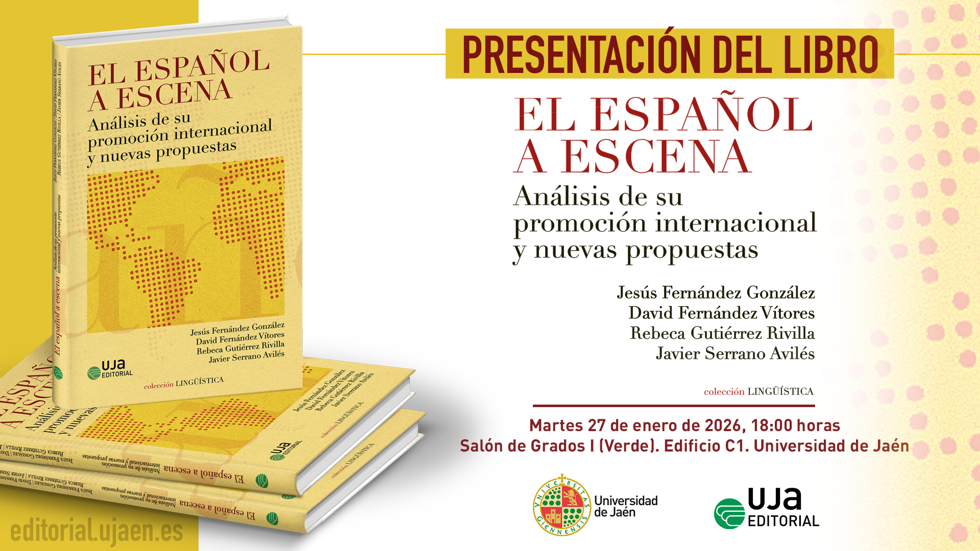 El próximo martes 27 de enero de 2026, la Universidad de Jaén acogerá la presentación del libro titulado El español a escena: análisis de su promoción internacional y nuevas propuestas. El evento tendrá lugar a las 18:00 horas en el Salón de Grados I (Verde), ubicado en el Edificio C1 del Campus de las Lagunillas.
